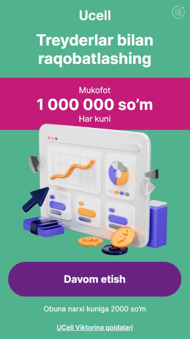 [UZ] Prognoz (Continue) 12 April 2026 GEO: Uzbekistan Operator: [UZ] Ucel Flow: 1 click Vertical: Mainstream Topic: Games CPA: 5 RUB Description: EUP 2000 сум в день