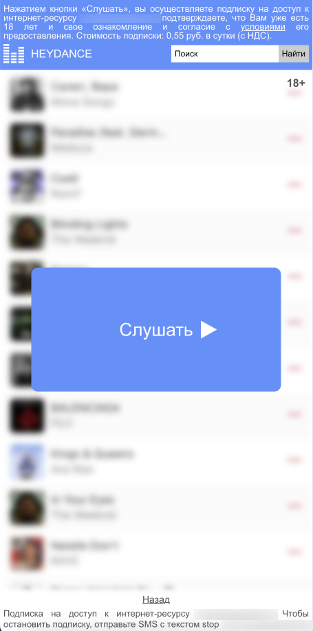 [BY] Hey-dance (Music List) 12 April 2026 GEO: Belarus Operator: [BY] MTS Flow: 1 click Vertical: Mainstream Topic: Music CPA: 20 RUB Description: EUP 0.55 BYN